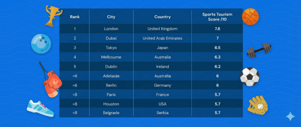 However, its relative lack of sport-related attractions beyond live events limits its ability to challenge London for the top spot. The data suggests that long-term success in sports tourism depends on heritage and storytelling, not just scale.